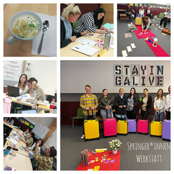 Die mobilen Elementarpädagog*innen erhielten in der Springer*innen-Werkstatt ein umfassendes Rüstzeug für ihren flexiblen Einsatz in unseren Einrichtungen. Neben organisatorischen Abstimmungen und Informationen zur evidenzbasierten Planung wurde jede*r Springer*in mit einem bunten Koffer (gefüllt mit Spiel- und Beschäftigungsmaterial) ausgestattet.