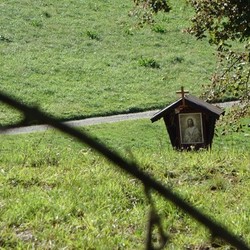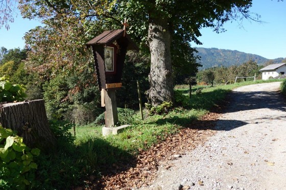 Ursprünglich stand dieses religiöse Kleindenkmal zwischen zwei mächtigen Linden und beherbergte eine schöne ein Meter hohe Skulptur von Maria mit dem Jesuskind im Arm, geschmückt mit Seidenblumen, Kerzen und Gestecken.
