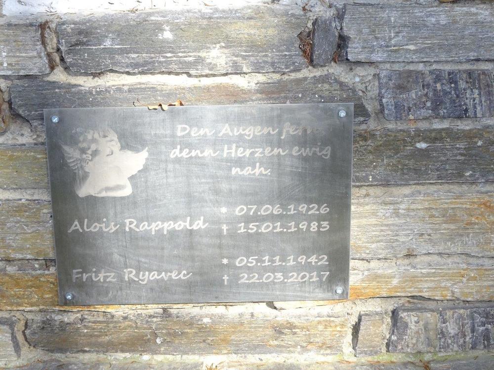Im März 2017 verunglückte der Bruder von Frau Rappold, Fritz Ryavec, in unmittelbarer Nähe auf unerklärlicher Weise mit dem Traktor – wie sein Schwager bei Waldarbeiten. Unterhalb der Nische trägt eine Tafel angebracht den Spruch: „Den Augen fern, den Herzen ewig nah“ und die Geburts- und Sterbedaten der beiden Verunglückten.
